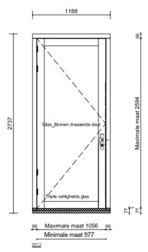 De binnendraaiende glas deur heeft een 1 onderdorpel, maar kan ook voorzien worden van een stapeldorpel.