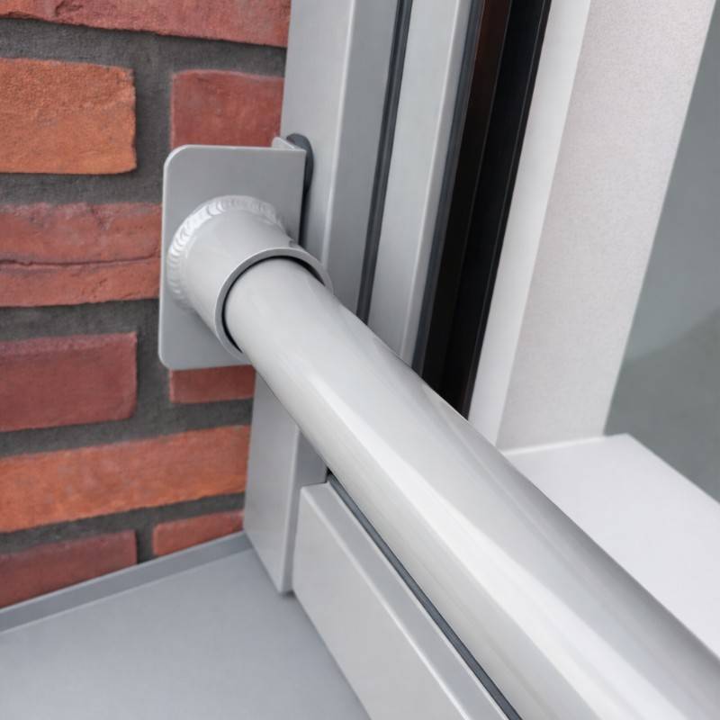 De schuifpui is voorzien van een knevelsluitingen, wat een extra beveiligingslaag tegen inbraakpogingen vormt. Omdat de schuifpui van binnenuit wordt bediend, is het voor een buitenstaander moeilijker om de sluiting te forceren.