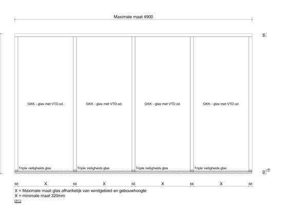 | Afhankelijk van windgebied en gebouwhoogte | 320 mm |